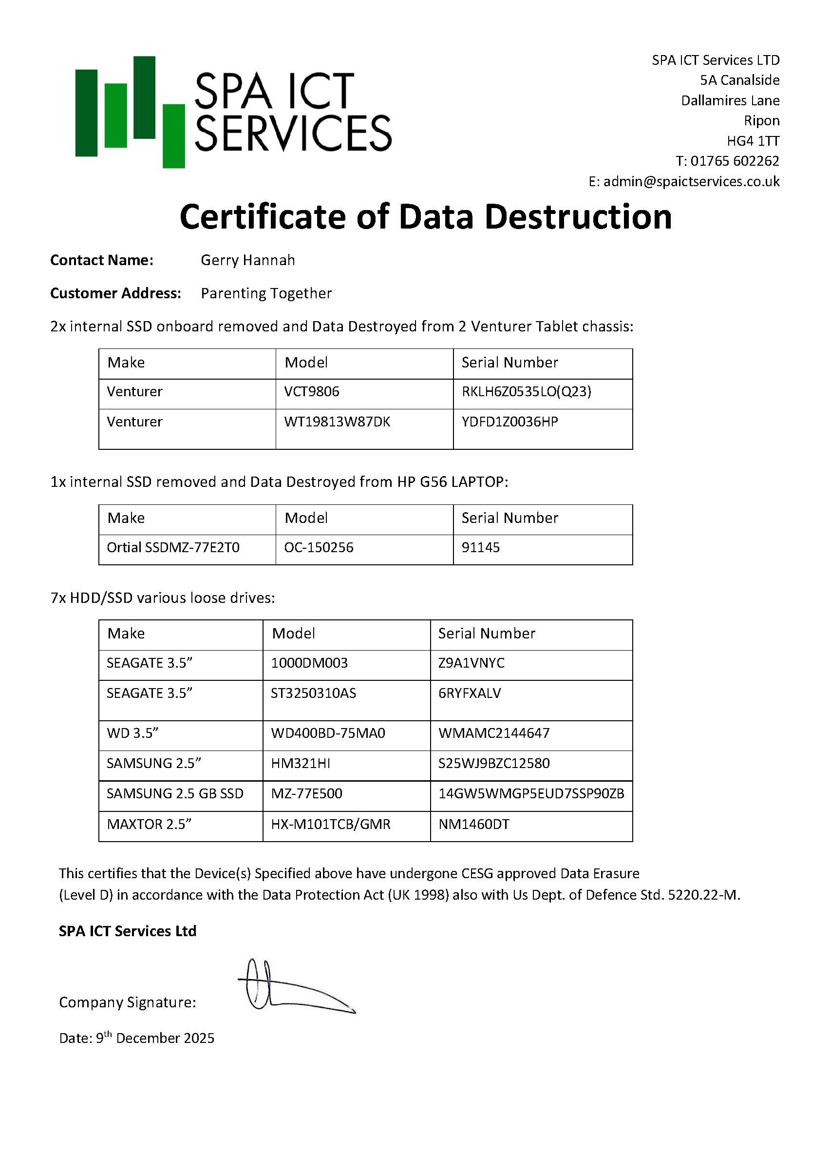 5. Not kept for longer than is necessary; certified safe disposal:-